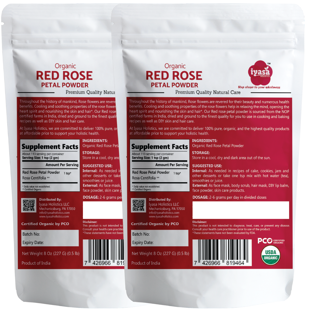 🍀CERTIFIED USDA ORGANIC, NON-GMO: Iyasa Organic Red Rose Petal Powder is sourced from NOP(USDA) certified farms of India and packaged in FDA registered facility. It is Non-GMO, Food grade, Vegetarian and Vegan; Gluten, Soy, Wheat and Corn free. It is also devoid of any preservatives or additives.
